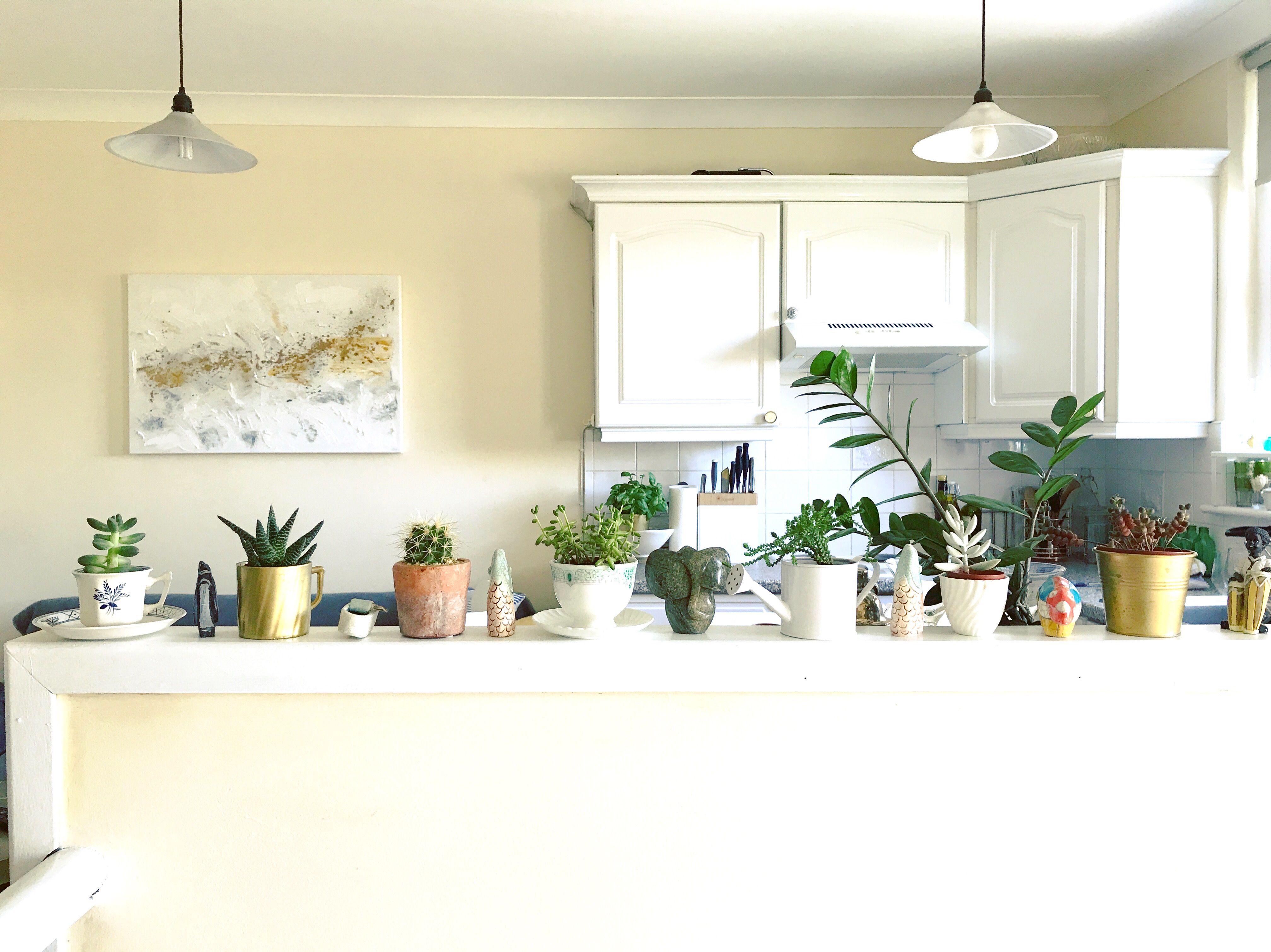 We didn’t want our plants to be just sitting on a shelf all ordinary, we wanted them to have their own individuality so we went on another treasure hunt through the local stores and found them all their own original antique teacups to show themselves off to the best that they could! We totally feel that the plants have turned our house into a home. After all plants are living things so they add more life to our already lively lifestyle 🙂